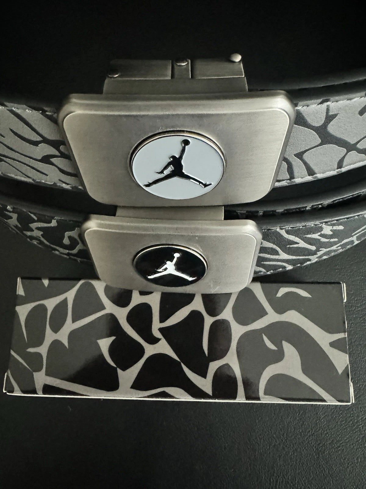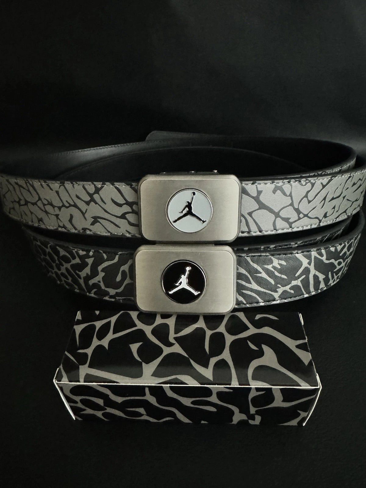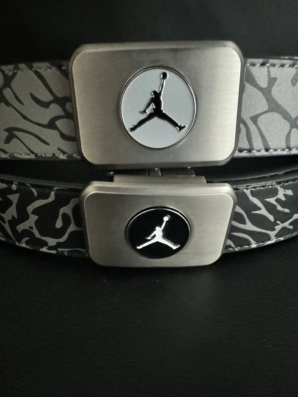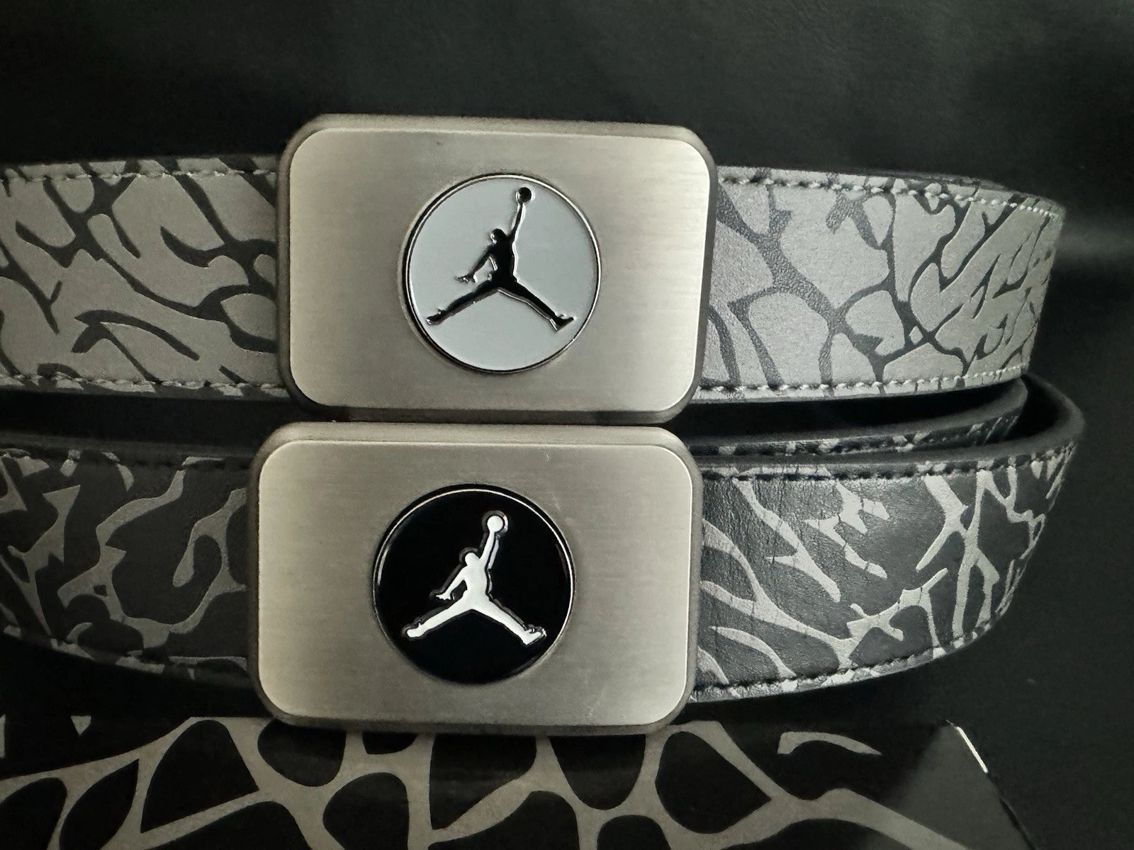 This leather Air Jordan belt features a unique elephant print design, giving it a stylish and textured look. The belt is fully adjustable in size, allowing for a comfortable and customized fit for any waist size. The belt buckle is designed in a ratchet style, making it easy to adjust and secure in place. This belt is not only fashionable but also functional, perfect for adding a touch of sporty elegance to any outfit. Belts max size is 42” please let us know what size you wear with the belt.