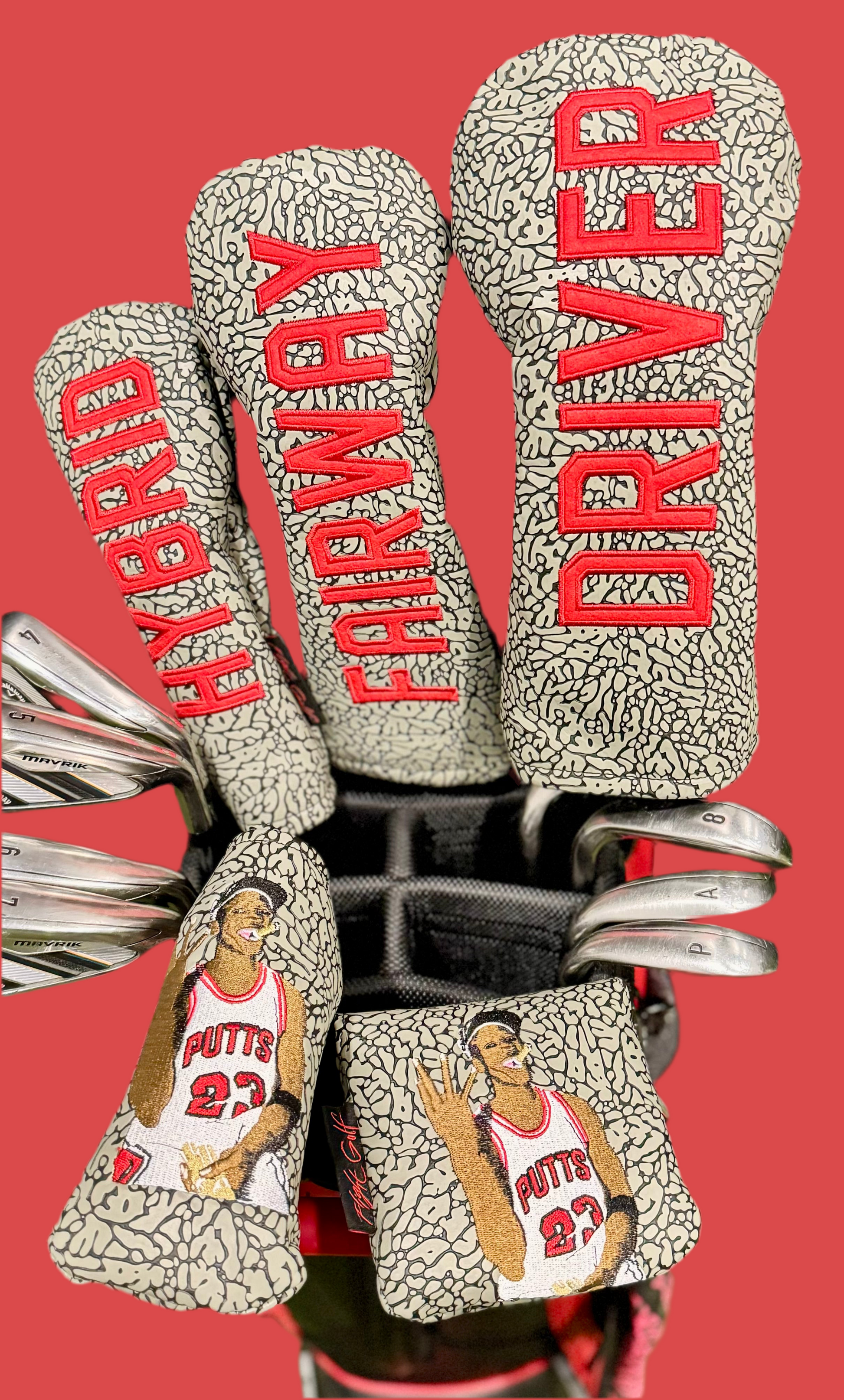 Air Jordan Golf head covers. These are the Classic Cement Grey with Black Elephant Print we all know and love!