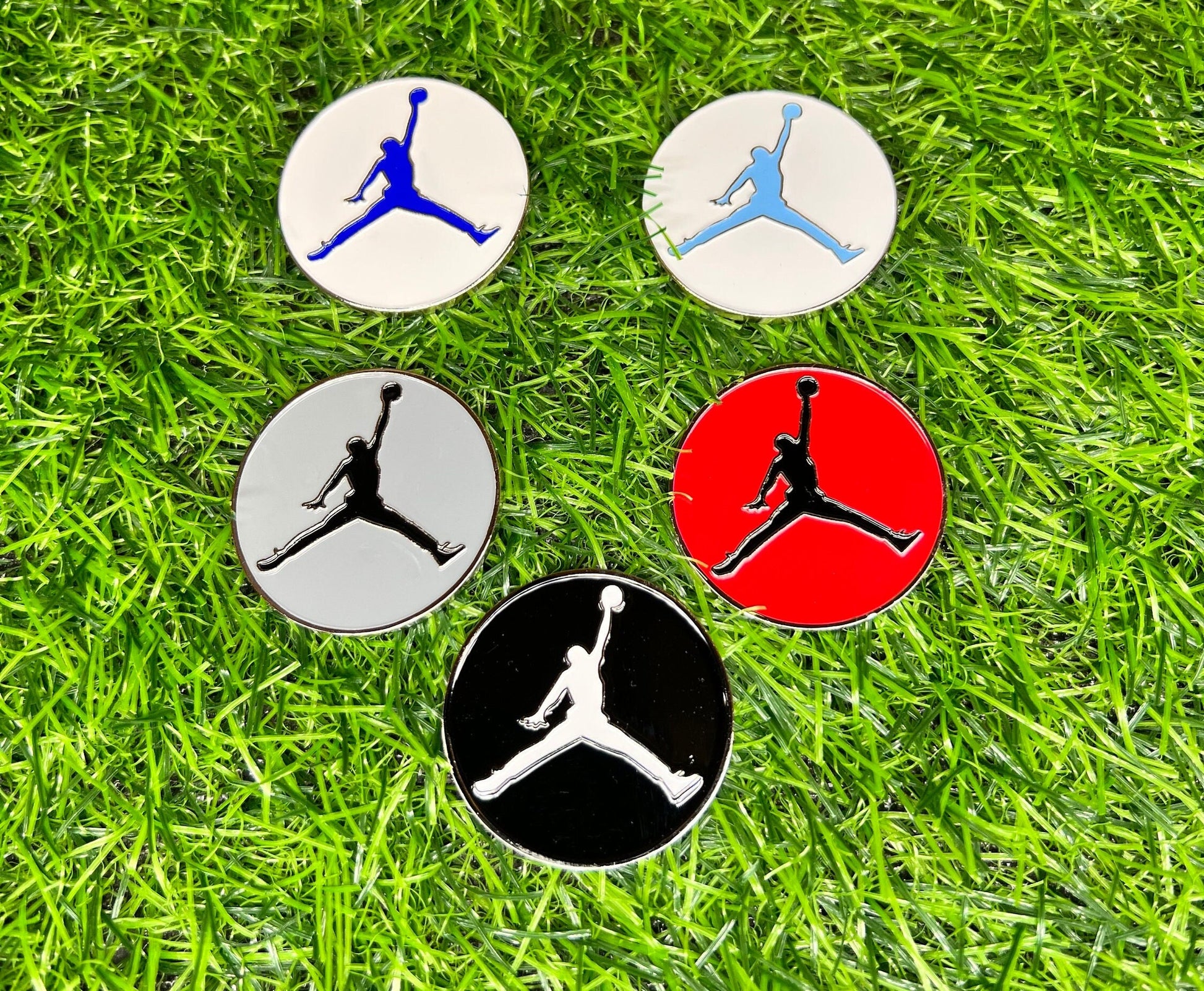 Get your favorite AJ Double Sided ball marker 1.5” coin. These are very heavy duty steel and have the opposite color on each side. So no matter how you plop your ball marker down it’s always on the correct side. These Markers can be used with any magnet and are a statement piece to any golfers game. The Jordan emblem is raised to show the logo even better.