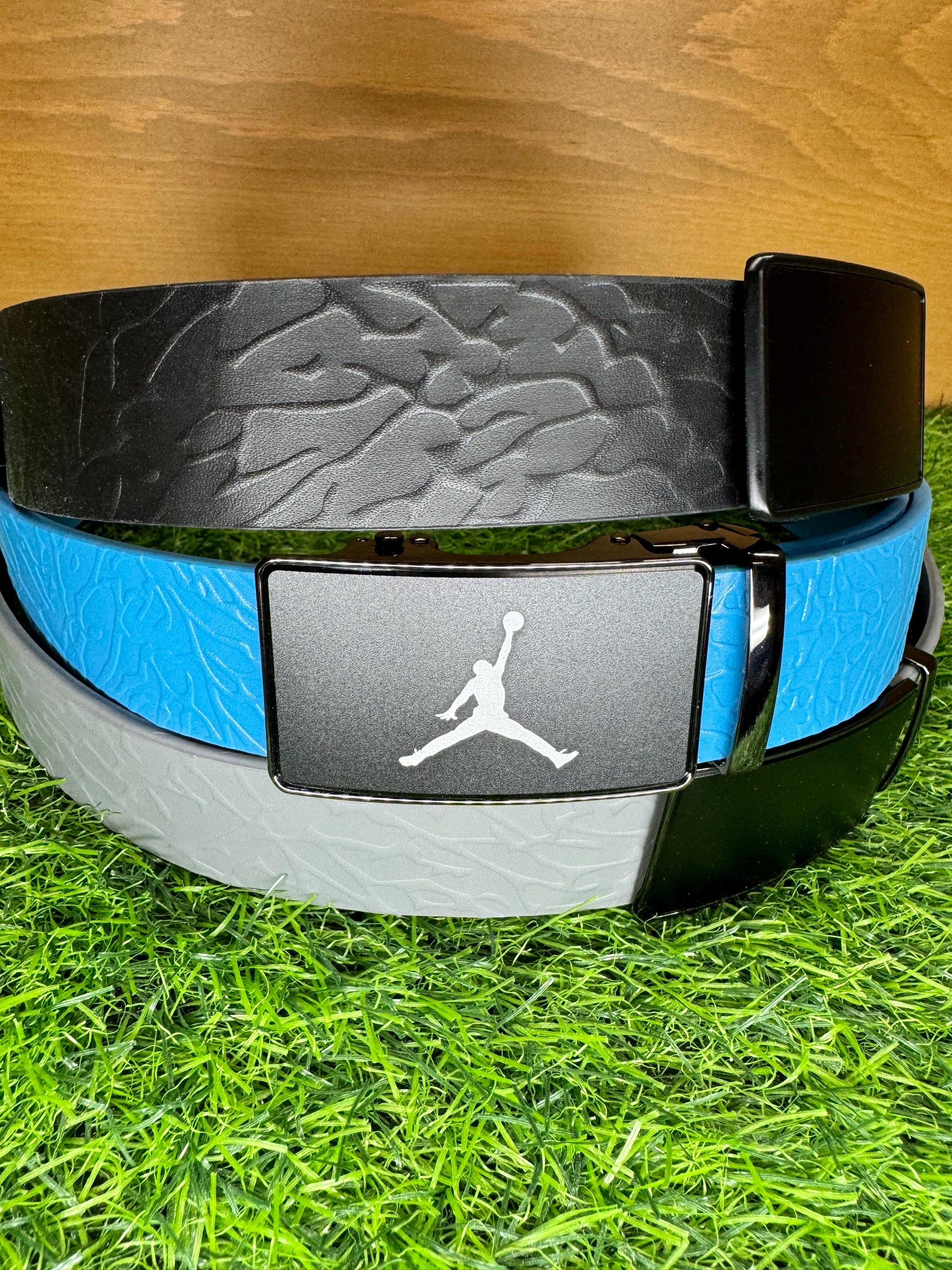 This leather Air Jordan belt features a unique raised elephant print design, giving it a stylish and textured look. The belt is fully adjustable in size, allowing for a comfortable and customized fit for any waist size. The belt buckle is designed in a ratchet style, making it easy to adjust and secure in place. This belt is not only fashionable but also functional, perfect for adding a touch of sporty elegance to any outfit. Belts max size is 44” please let us know what size you wear with the belt.