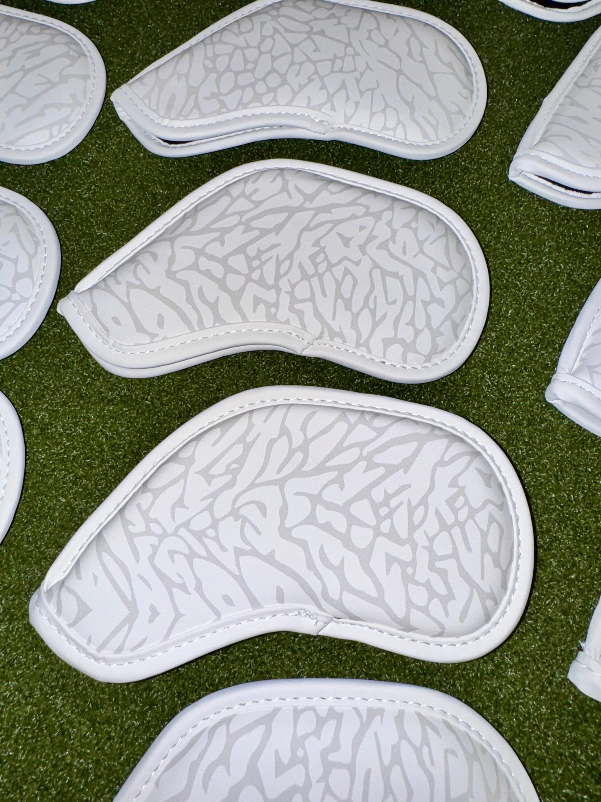 These are brand new handmade iron head covers that were made from back packs shoe bags etc. The come with a (Double) magnetic closure to ensure you never lose a cover and it stays connected to club. The inside is made of soft fleece to protect your irons while walking, cart riding or just transit to the golf course. Protect your irons in style with these Air Jordan Elephant print head covers. They come in a set of 10 or you can purchase individually.