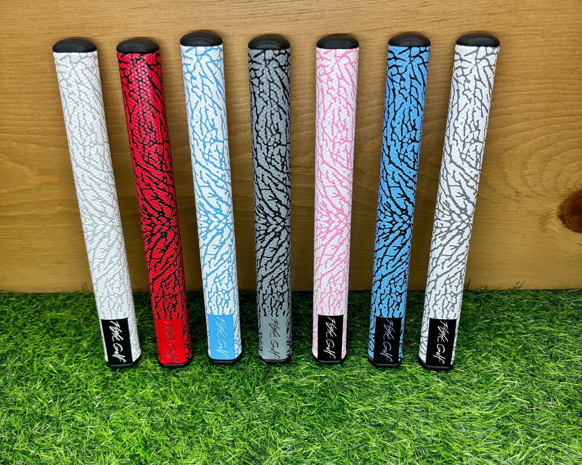 This is a one of kind Air Jordan inspired elephant print putter grips by Flight Golf. It’s made with Evo Foam and is just like the super stroker slim 2.0 grips. Its shape is a flat oval as you can see from the pictures. The grip is like a Winn dri tac style leather and hexagon texture pattern.