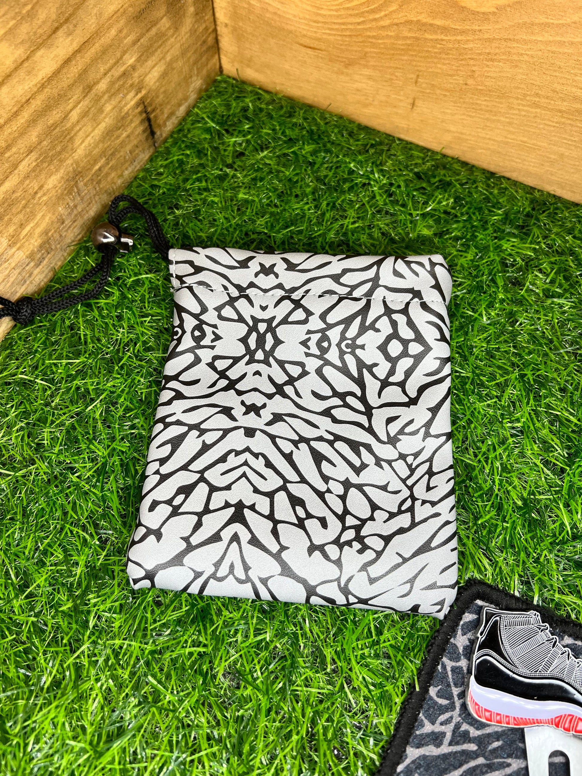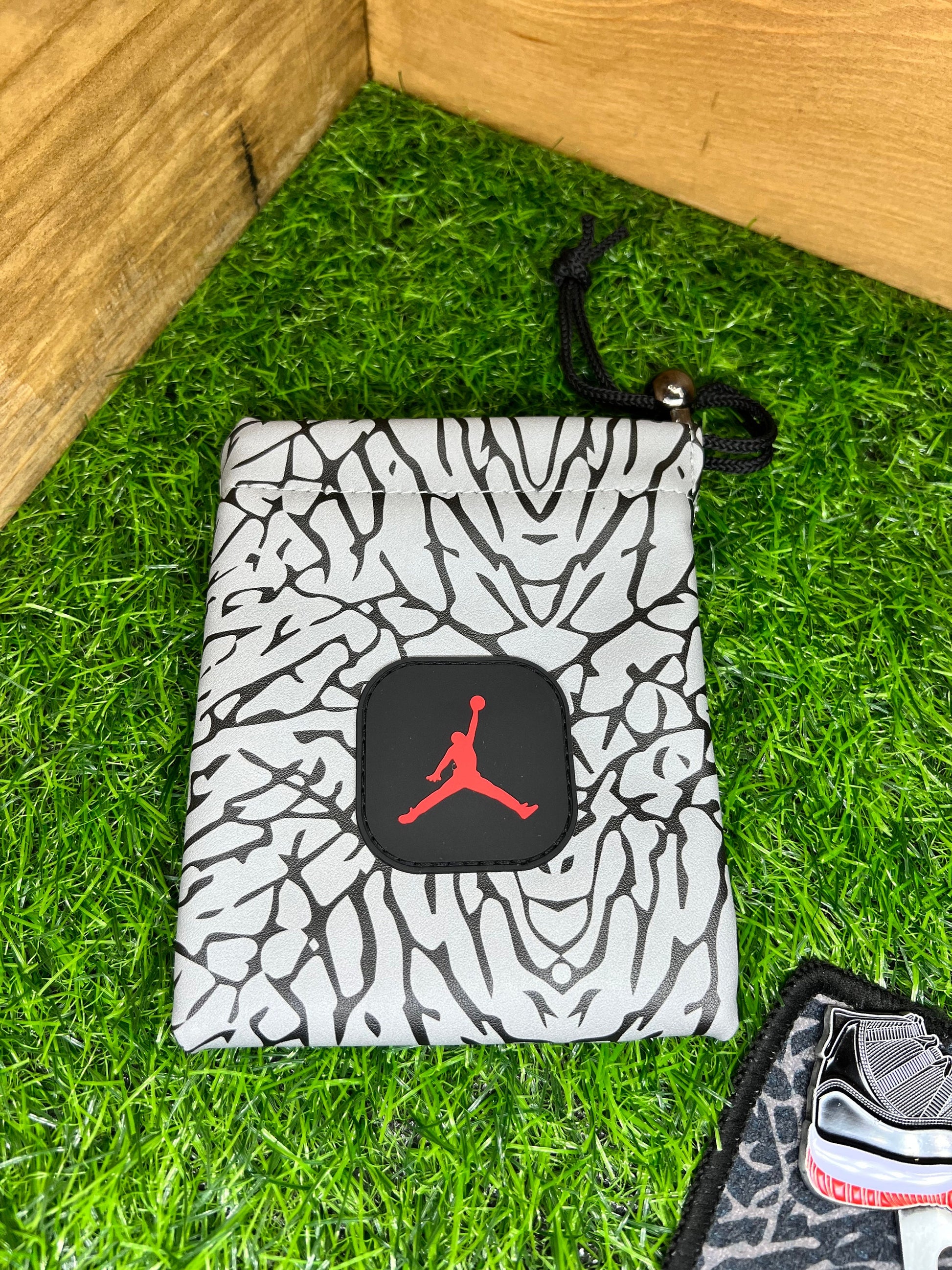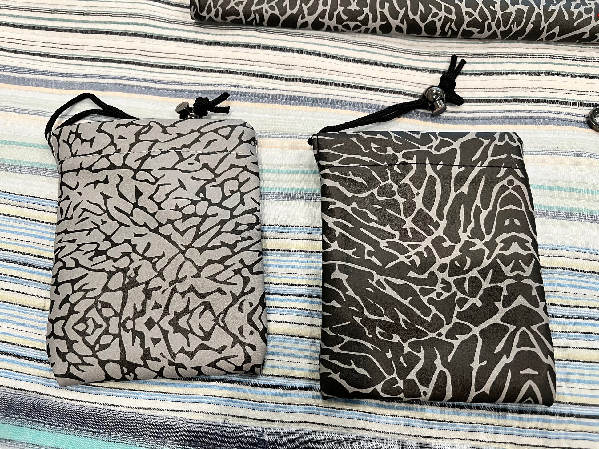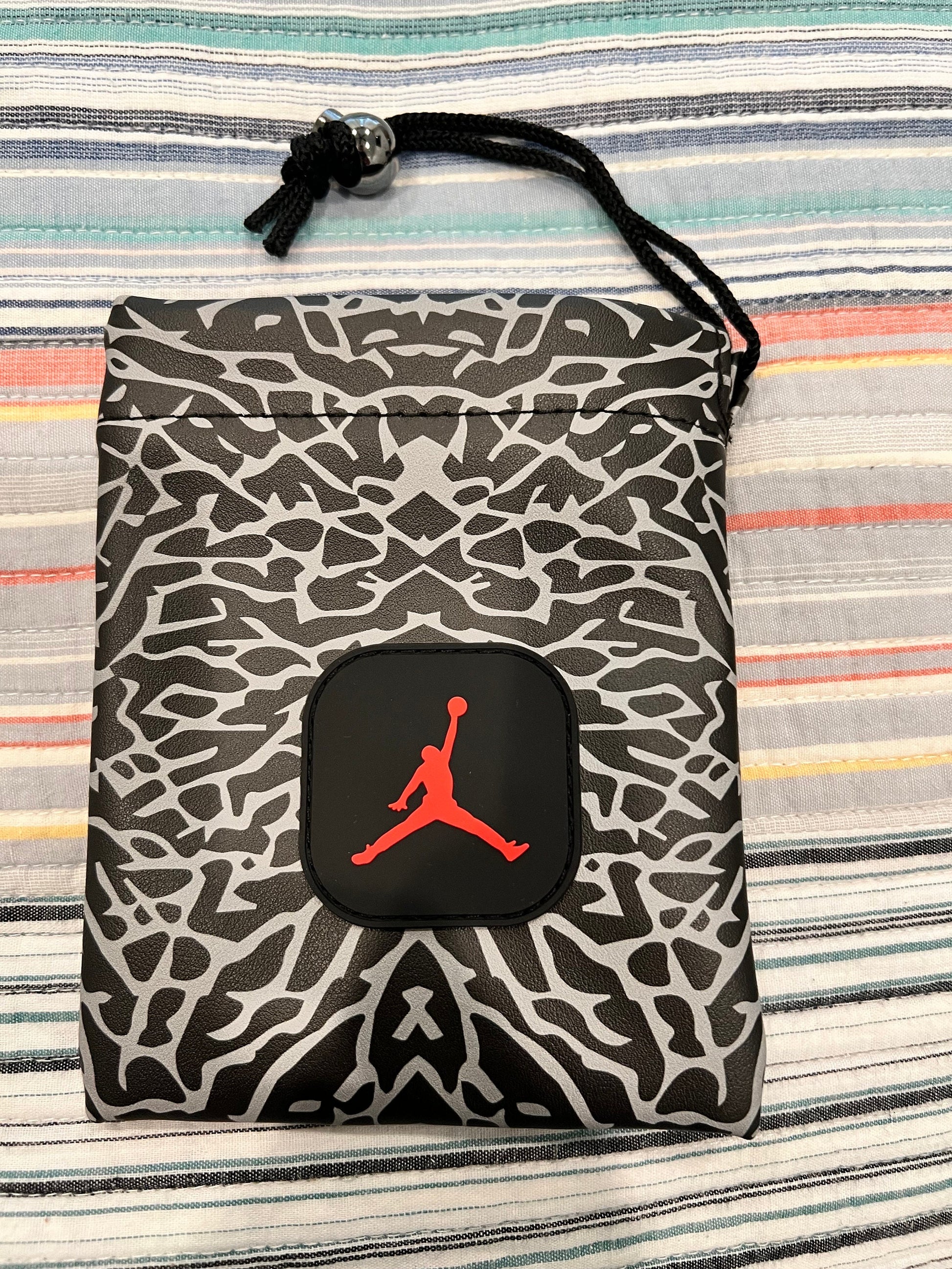 This is a recycled product from an air Jordan backpack. The material is made of soft leather canvas. The logo is made of rubber so it will never stain or fade. We added plush fleece lining to protect your belongings inside. The bag closes with a rope and fastener. If you have any questions about our products, send us a message.