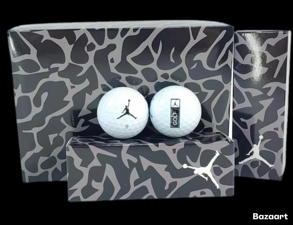 These are custom golf balls labeled with Air Jordan and have alignment and numbers of the famous numbers Jordan played throughout his career. They feel great and are not stamped on. They were made in a factory. The alignment on the ball is made just like the back of the Jordan XII shoes.