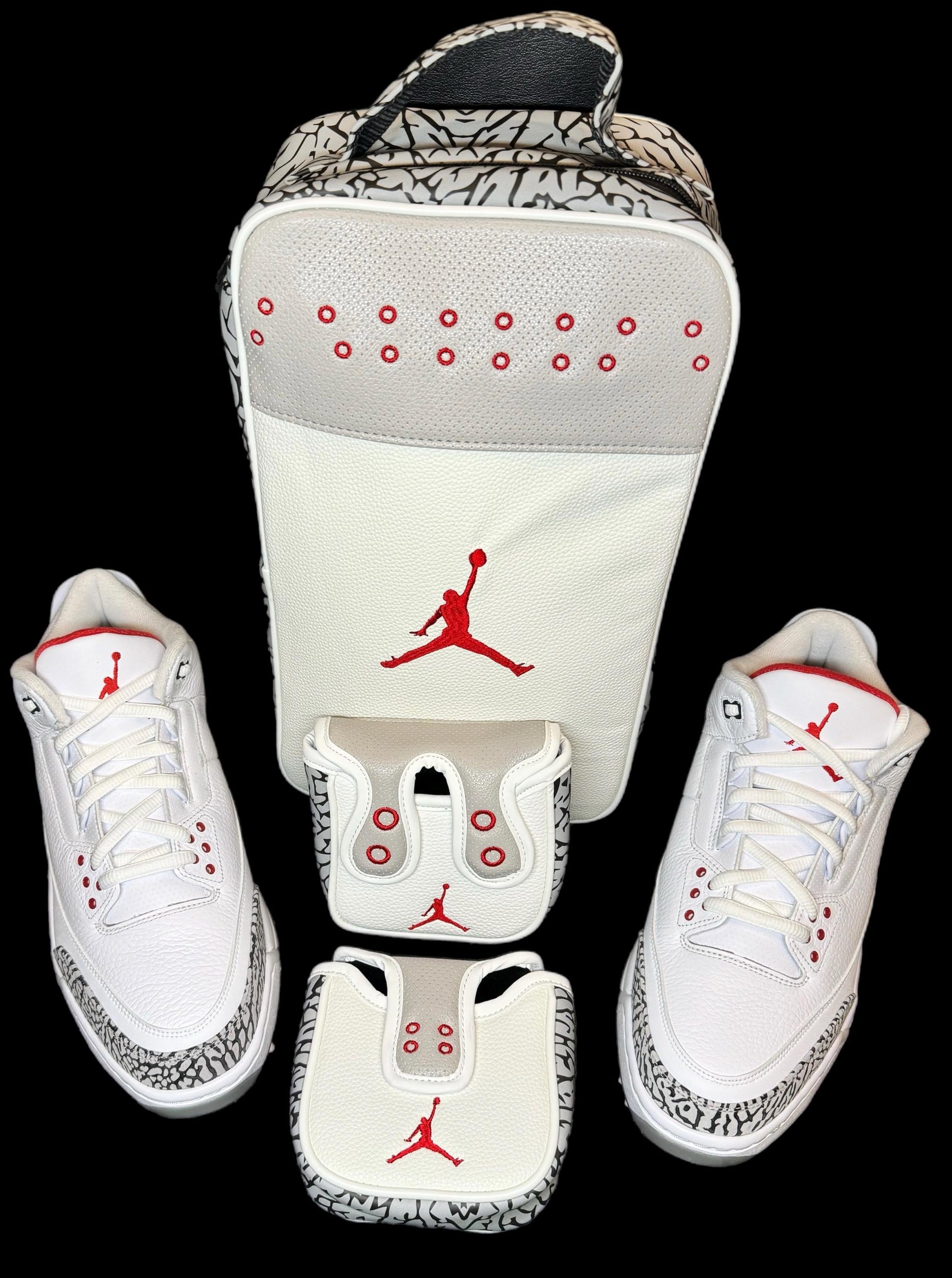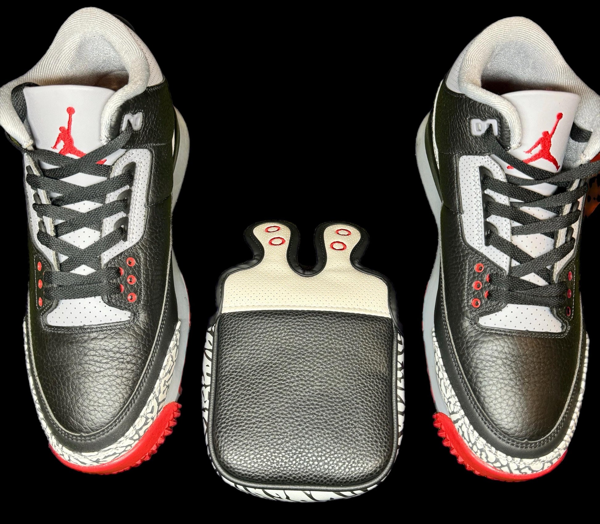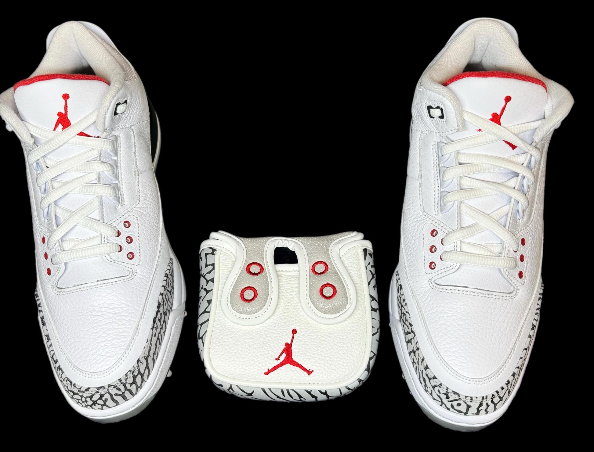 Elevate your golf game with the exclusive Air Jordan 3's Elephant print Magnetic Mallet Cover. Crafted with meticulous attention to detail, this hand-made putter head cover is designed to offer superior protection for your club and add a touch of style to your golf bag. The unique design, featuring the iconic Air Jordan silhouette, blends fashion with function, ensuring your putter stays covered and secure on the green. Whether you're practicing or competing, this distinctive cover is a must-have accessory for any golf enthusiast looking to make a statement.