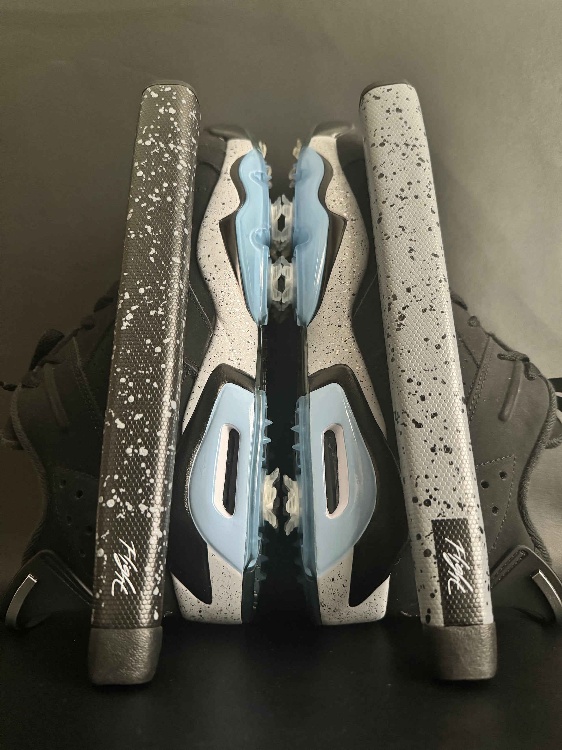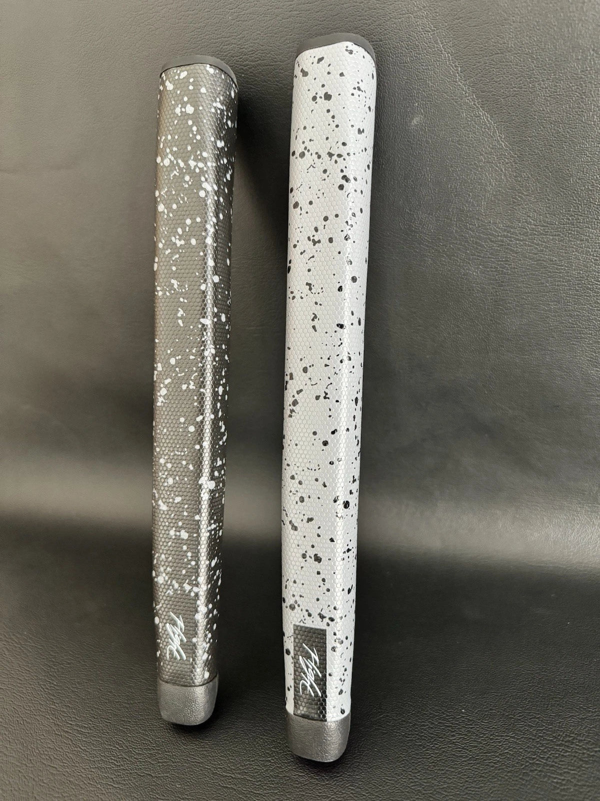 These are brand new flight golf putter grips inspired by Air Jordan 4 Cement Black splatter print. This is a Pistol grip style and has the same feel as a Super Stroker style putter grip.